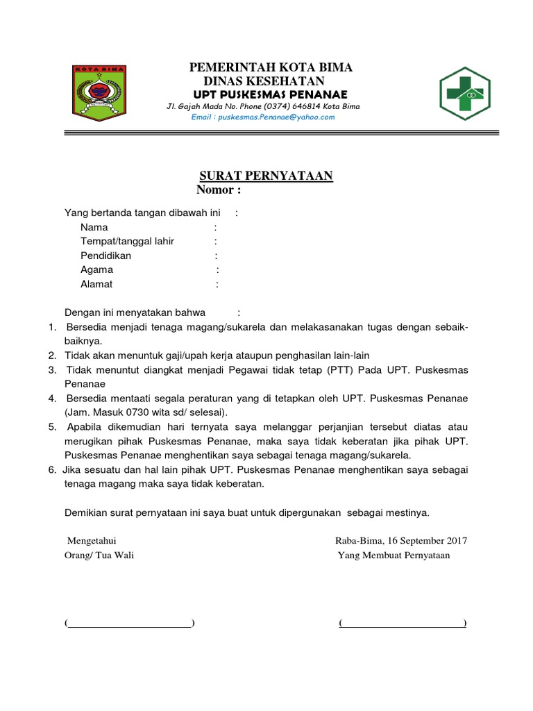 Surat Izin Orang Tua Untuk Magang from ysalma.files.wordpress.com Surat pernyataan merupakan surat yang dibuat untuk menyatakan sesuatu kepada orang lain atau instansi secara resmi atau formal. Contoh surat pernyataan orang tua memberi izin magang/praktek kerja. Berisi contoh surat pernyataan lengkap dengan formatnya. Yang bertanda tangan di bawah ini : Penjelasan lengkap seputar contoh surat izin orang tua yang baik dan benar untuk berbagai macam keperluan. Hal ini bertujuan untuk menguatkan surat pernyataan ini. Isi berisi inti dari surat izin orang tua, baik pernyataan persetujuan maupun penolakan terhadap kegiatan yang dimaksud. Tidak menuntut diangkat menjadi pegawai tidak tetap.